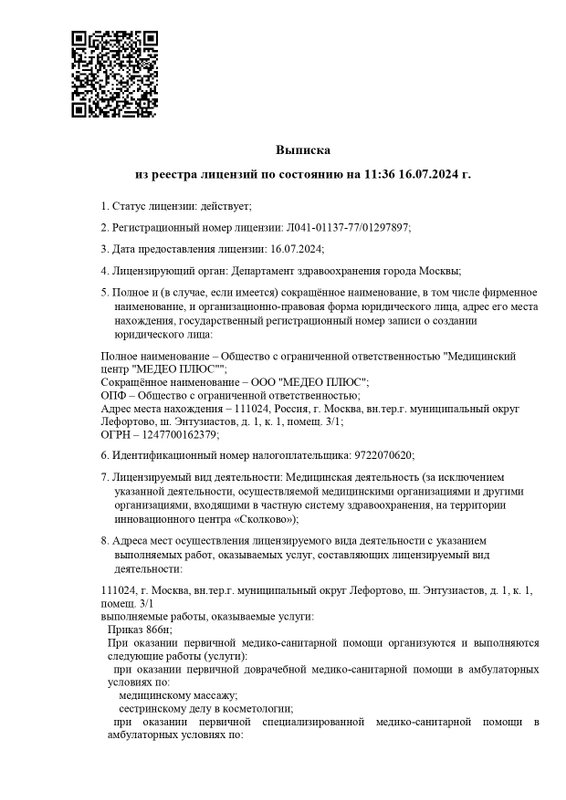 Среди предлагаемых процедур можно выделить остеопатию, мануальную терапию. Здесь же работает лаборатория.
